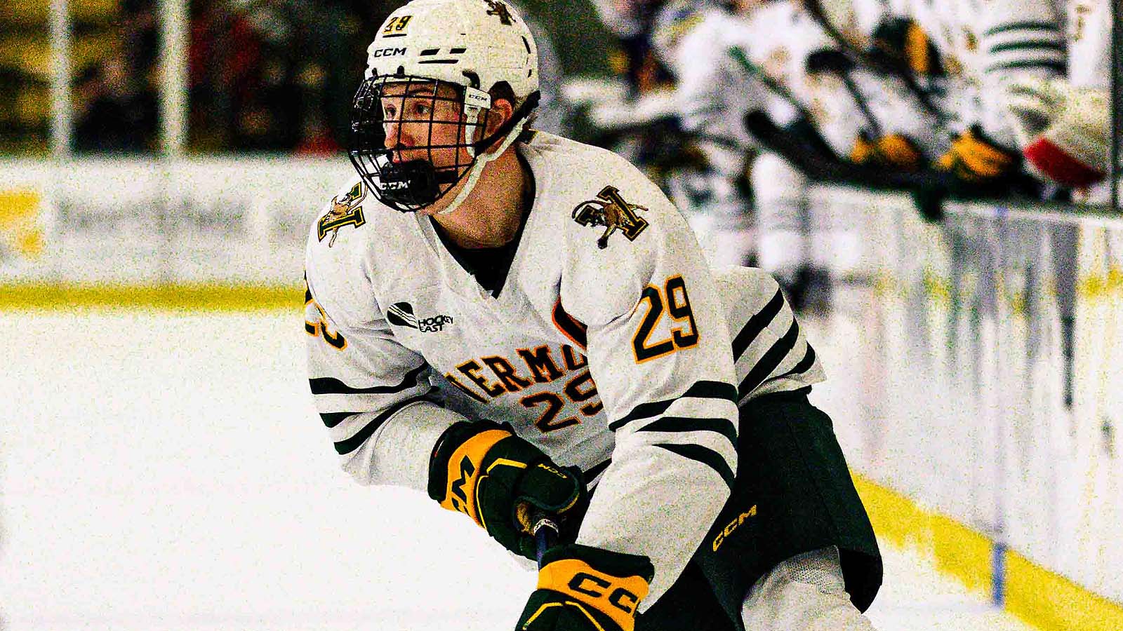 Aiden Wright, UVM (Fr., G; Wake Forest, N.C.) Stopped 45 of the 50 shots he faced from No. 16 Northeastern and carried a 2.50 goals against average this weekend, backstopping the Catamounts to their first sweep of a ranked Hockey East opponent since 2020.