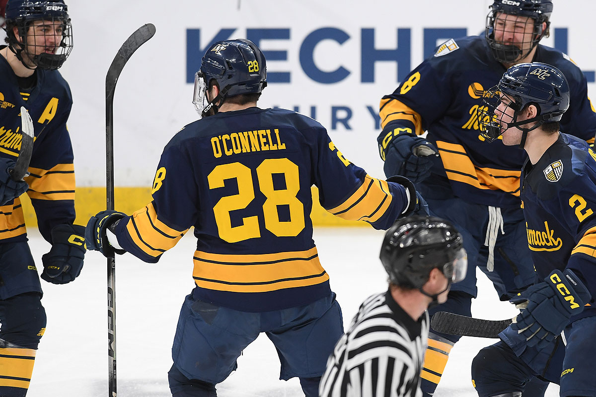 With the win, Merrimack improves to 20-15-2 on the season, a turnaround after losing 20-plus games in each of the last two years. Both regular season meetings were also low scoring affairs with the Minuteman sweeping the home-and-home series, 2-1 and 3-1 in mid January.
