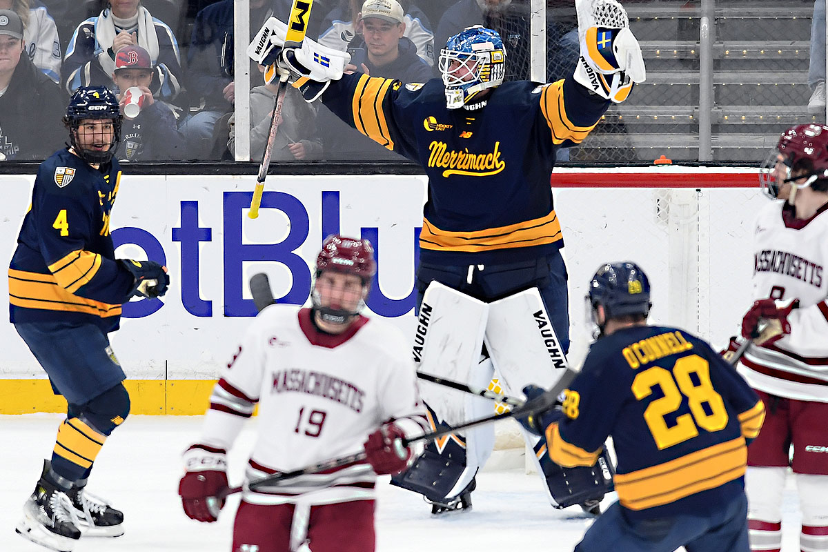 • Merrimack’s Friday night victory marked the first time in Hockey East Tournament history that a No. 8 seed defeated a No. 2 seed in the semifinal round.
